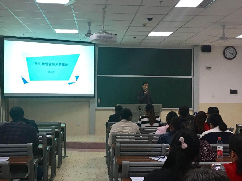 为了加强学校学生宿舍管理员队伍的建设,提高宿舍管理人员的整体素质,强化人员的责任意识和服务意识,进一步提升学校学生宿舍管理和服务水平,2017年11月1日下午,宿舍管理员培训在三号教学楼3106教室举行。此次培训由我校学生工作处、保卫处联合开展,全体宿管专干、学生宿舍各楼栋管理员参加。