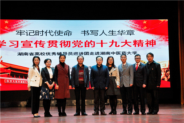 中南大学张金学(2015年度全国高校辅导员年度人物)、长沙理工大学唐青(全国第六届辅导员职业能力大赛三等奖)、湖南大学茹娜(第三届全国辅导员职业能力大赛二等奖、全国高校优秀辅导员、全国优秀教育工作者)、湖南农业大学常徕 (2017年湖南省“社会主义有点潮”主题演讲比赛一等奖)、湖南中医药大学马改红 (2016年度湖南省辅导员年度人物) 五名优秀辅导员老师结合自己学习党的十九大精神,以丰富的视角、生动的形式,从“点亮理想的灯照亮前行的路”“开启新征程做中国奇迹的参与者”“共谋新发展共创新格局”“巨轮起航看我中国引领人类命运共同体”以及“坚持文化自信勇担时代使命”等不同的角度深刻剖析解读了党的十九大精神的内涵,为在座师生献上了一场精彩的文化盛宴。