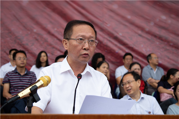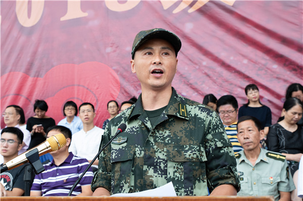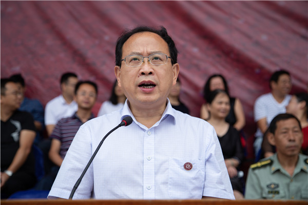武警湖南总队、机动支队参谋黄文波少校代表帮训方感谢学校领导、老师的鼎力支持和同学们的充分信任,他希望全体新生把这次军训成果转化为努力学习、刻苦钻研的强大精神动力;教师代表信息科学与工程学院刘伟以“自信、自律和自爱”与全体新生共勉,希望新生们珍惜时光,不负韶华;新生代表信息科学与工程学院的梁森表示愿以奋斗者的姿态努力学习,发奋拼搏,担当起国家民族复兴之大任。