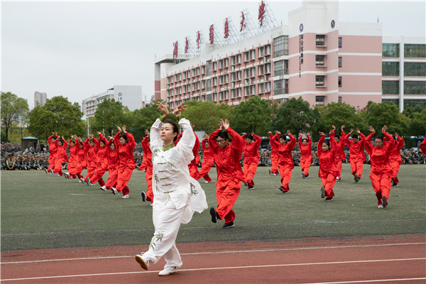 我校(院)副处级以上干部、博士生导师及教职工代表共同观摩了典礼和大会,开学典礼前,校传统保健队带来了极具中医特色的马王堆导引术。