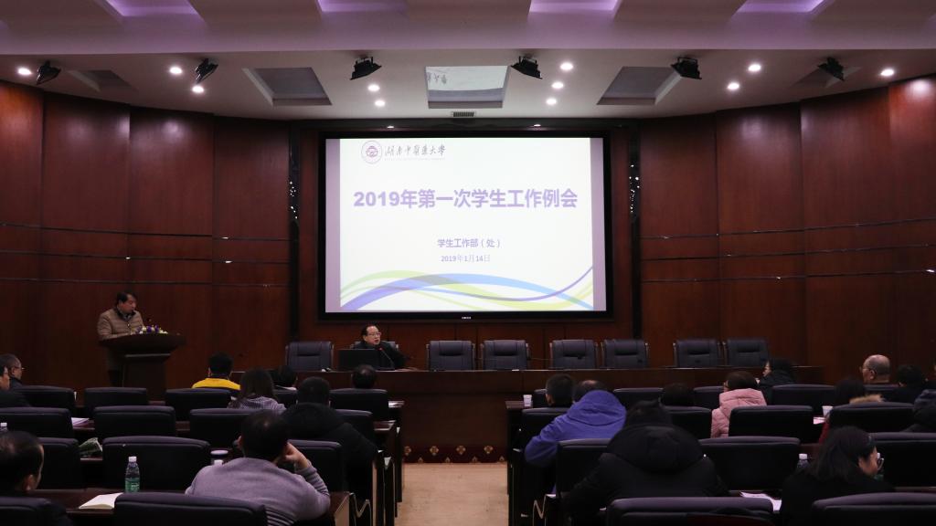 1月14日下午,学校在国际交流中心学术报告厅召开2019年第一次学生工作会。学生工作部、招生就业处、校团委、组织人事部、保卫处、教务处、后勤、校医院、计财处等职能部门负责人及各学院分管学生工作领导、全体辅导员参加了会议。会议由副校长葛金文主持。