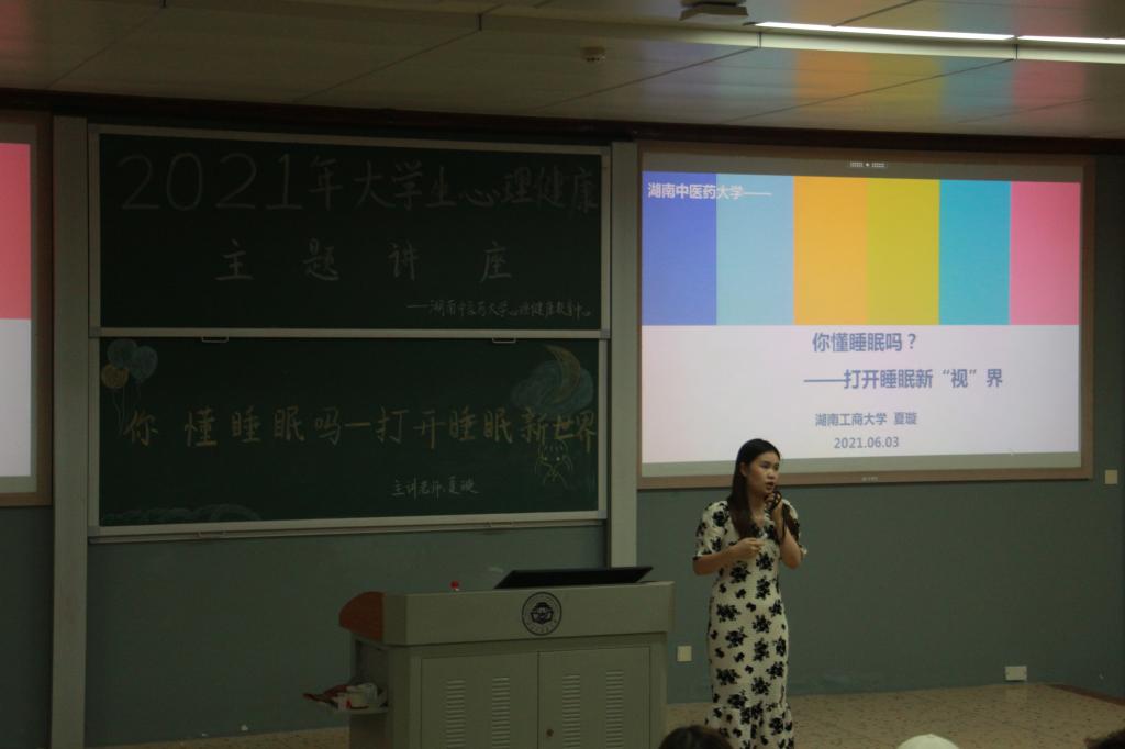 6月3日晚19:00,由学生工作部(处)大学生心理健康教育中心主办的《你懂睡眠吗?——打开睡眠新“视”界》主题培训在含浦校区第三教学楼3117教室顺利开展。本次培训由湖南工商大学心理健康教育专职教师——夏璇主讲。各个学院的心理委员、校心服部成员以及校“心晴使者”朋辈团队成员,以及部分有兴趣了解睡眠的同学参加了本次培训。
