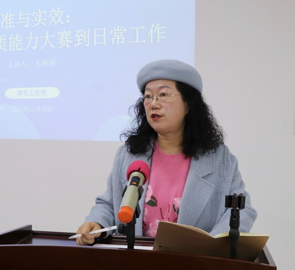 李晓红副部长强调,辅导员是学生日常思想政治教育和管理工作的组织者、实施者和指导者,辅导员能否发挥好作用将直接影响到高校学生思想政治工作的水平和成效。而本次讲座将实际工作与辅导员素质能力大赛设计相结合,把大赛还原到日常工作中,不仅为比赛提供了很多实用技能和思路上的指导,更有对育人工作的思考,可谓“干货满满”。她要求辅导员认真整理收获,在即将举办的湖南中医药大学第九届辅导员素质能力大赛中展现风采,聚焦育人主责主业,创造新的更大成就。