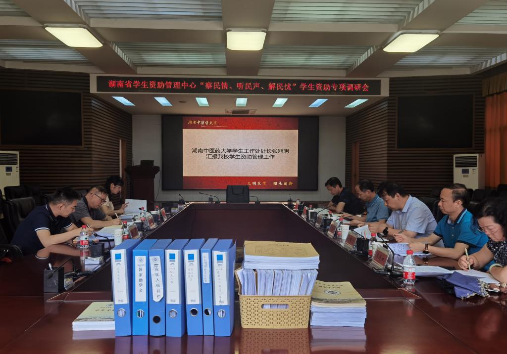 6月17日下午,省学生资助管理中心副书记、二级调研员杨昌江一行来我校进行“察民情、听民声、解民忧”学生资助专项调研。副校长廖菁,学生工作部(处)、财务处、研究生院、湘杏学院相关负责人等在行政楼一楼会议厅参加调研会。会议由廖菁主持。