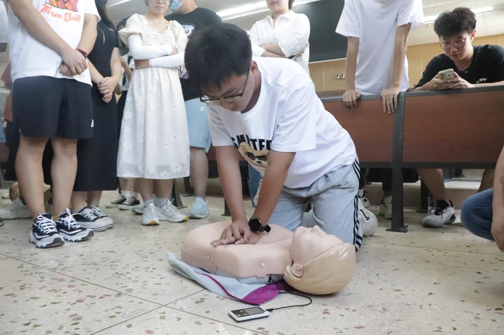 为在校园普及宣传应急救护知识和技能,提升2022级新生同伴学长处置现场突发事件的应急能力,进一步确保军训期间新生安全,我校于9月3日分两期举办2022级新生同伴学长急救培训活动,共194名同伴学长参加。