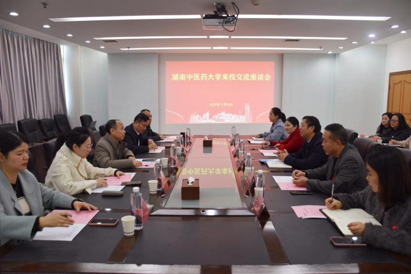 11月20日,我校副校长廖菁一行赴湖南医药学院交流学习,湖南医药学院党委副书记罗求实、学生工作部相关负责人、各学院分管学生工作负责人以及我校学生工作部相关负责人参加座谈。