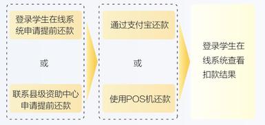 ⑴可以到县级资助中心或登录学生在线服务系统申请一次性还清一份或多份《借款合同》尚未清偿的所有助学贷款本金及相应利息;也可以申请提前偿还部分本金(必须为人民币500元以上、且为100元的整数倍数的金额)及相应利息。申请后需尽快前往就近的县级资助中心或高校资助中心使用助学贷款专用POS机刷借记卡还款或在支付宝账户内充值还款。